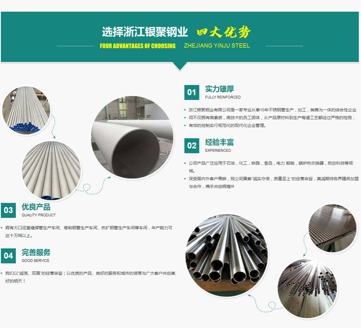 Copyright @ 浙江銀聚鋼業(yè)有限公司-不銹鋼管廠(chǎng)家 版權(quán)所有 | 單位地址:浙江省溫州市龍灣區(qū)永中街道 生產(chǎn)基地:浙江省麗水市龍泉市塔石鎮(zhèn)金崗工業(yè)園區(qū) 浙ICP備2021034082號(hào)-8